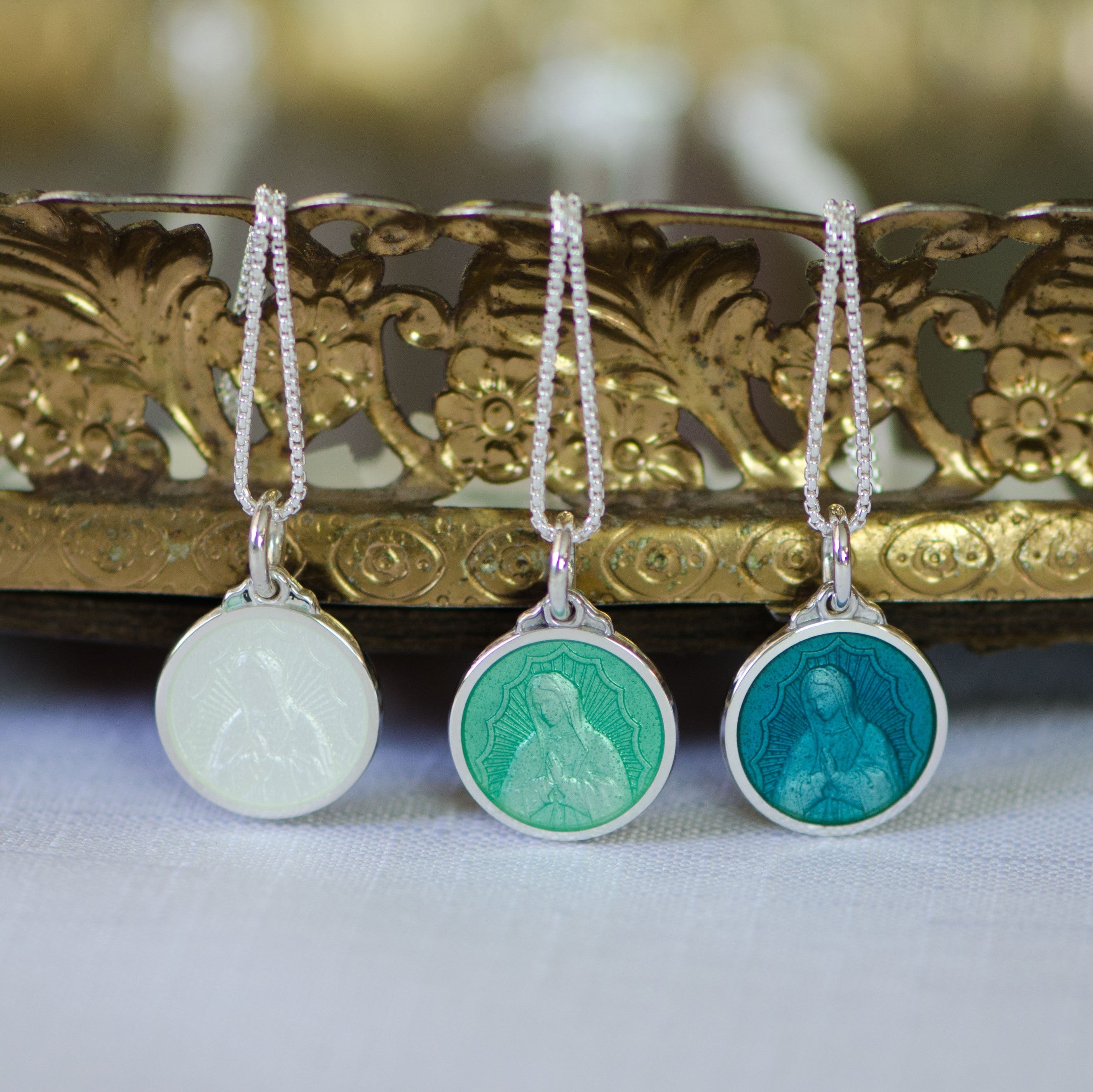 Our Lady of Guadalupe, Green with 14k Gold Vermeil Relief, (Two sizes)